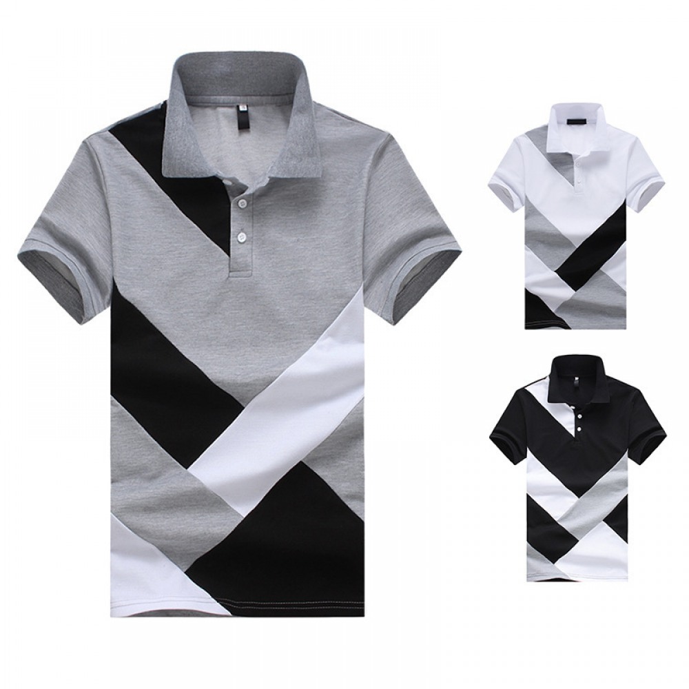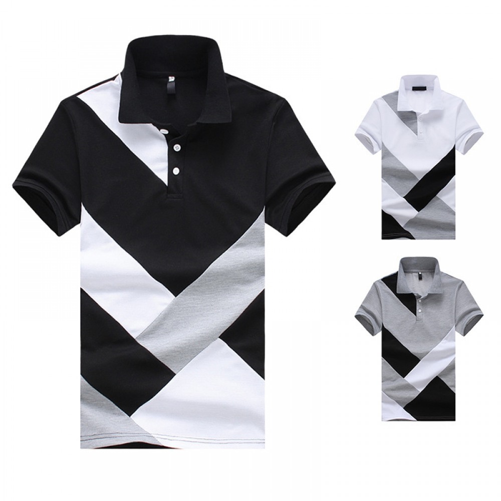 Tiled Personality New Men's Summer Luokou Hit Color Lapel Short Sleeve T-Shirt