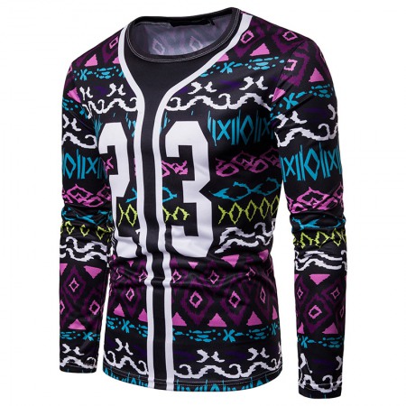 Men's Letter Printing Round Neck Long-Sleeved T-Shirt