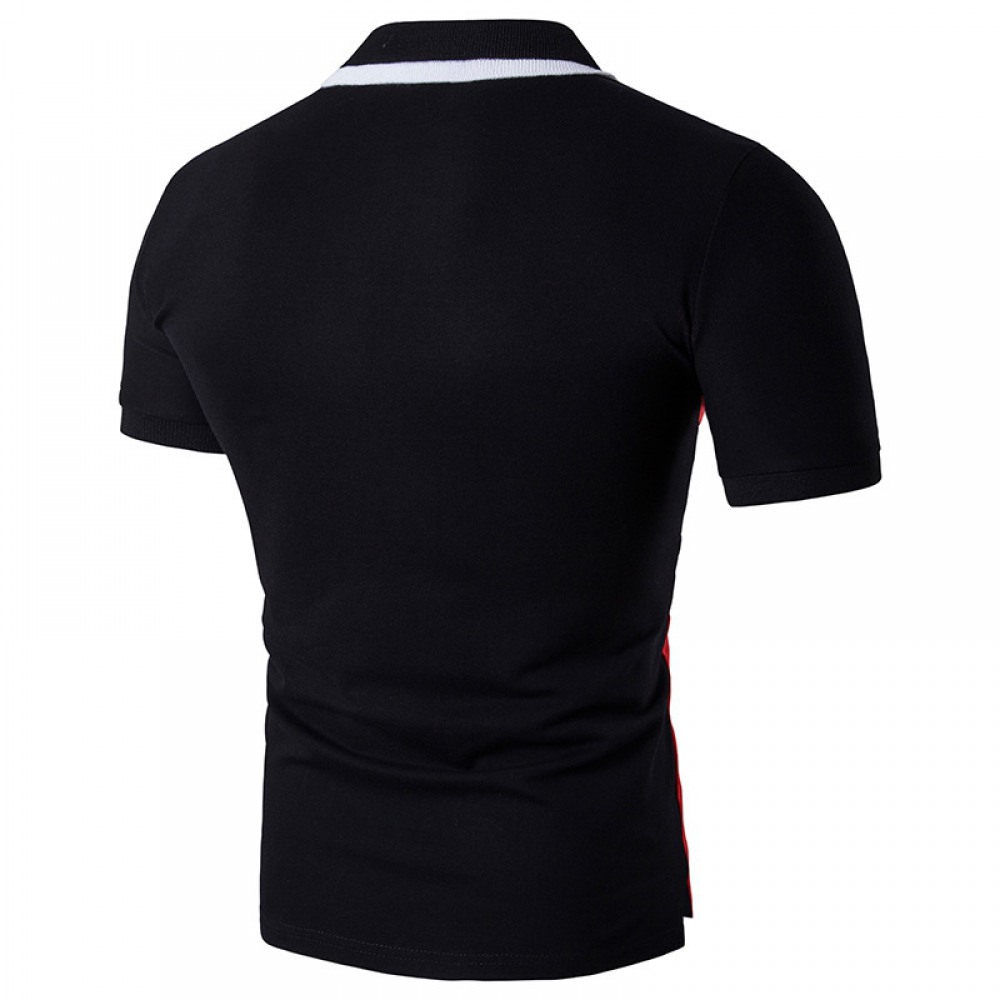 New Men's Wind Diagonal Stripes Stitching Lapel Short Sleeve Large Size T-Shirt